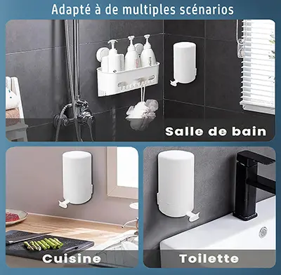 Ce porte-savon mural utilise une fixation adhésive pour une installation facile, ce qui le rend idéal pour les surfaces lisses et planes telles que les murs carrelés, le verre et les comptoirs.